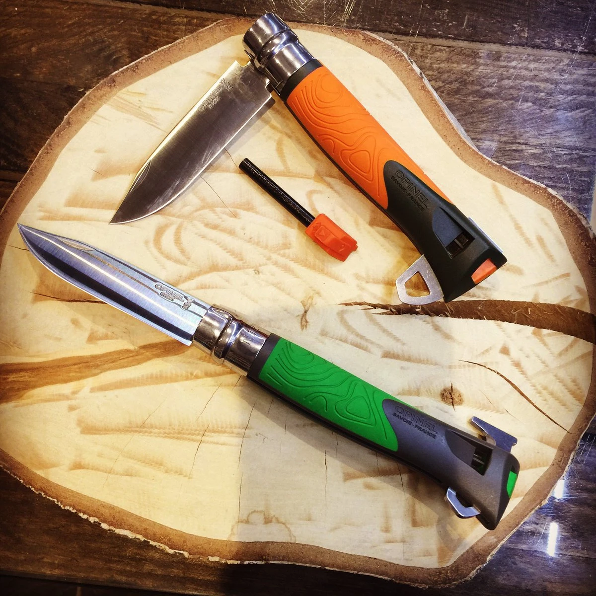 Впрочем, несмотря на приверженность традициям, компания Opinel все же шагает в ногу со временем. Поэтому современные ножи этого бренда, которые предназначены для туризма и поездок на природу, внешне существенно отличаются от традиционных моделей. Они имеют пластиковую рукоятку, которая может быть довольно яркой, чтобы нож было легко найти. В рукоятку встроен свисток и продет в специальное отверстие темляк. Лезвие ножа сделано не полностью гладким, а с небольшим участком серрейторной заточки. Для него используется исключительно нержавеющая сталь. Такие модели наиболее универсальны для выполнения любой работы и отлично защищены от повреждений.