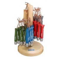 Клинок Опинель №8 по геометрии напоминает турецкие ятаганы – у него гладко заточенное лезвие и поднятое практически до линии обуха острие. Длина лезвия равна 85 мм. Клинок довольно тонкий – 1,5 мм и подойдет для точных аккуратных разрезов. В качестве материала лезвия, в Opinel №8 используется нержавеющая сталь. Это марка 12C27, которая производится по традиционным шведским технологиям. Такая сталь объединила в себе два важных свойства: коррозийную стойкость и твердость. Поэтому Опинель №8 как нельзя лучше подходит именно для полевого использования.