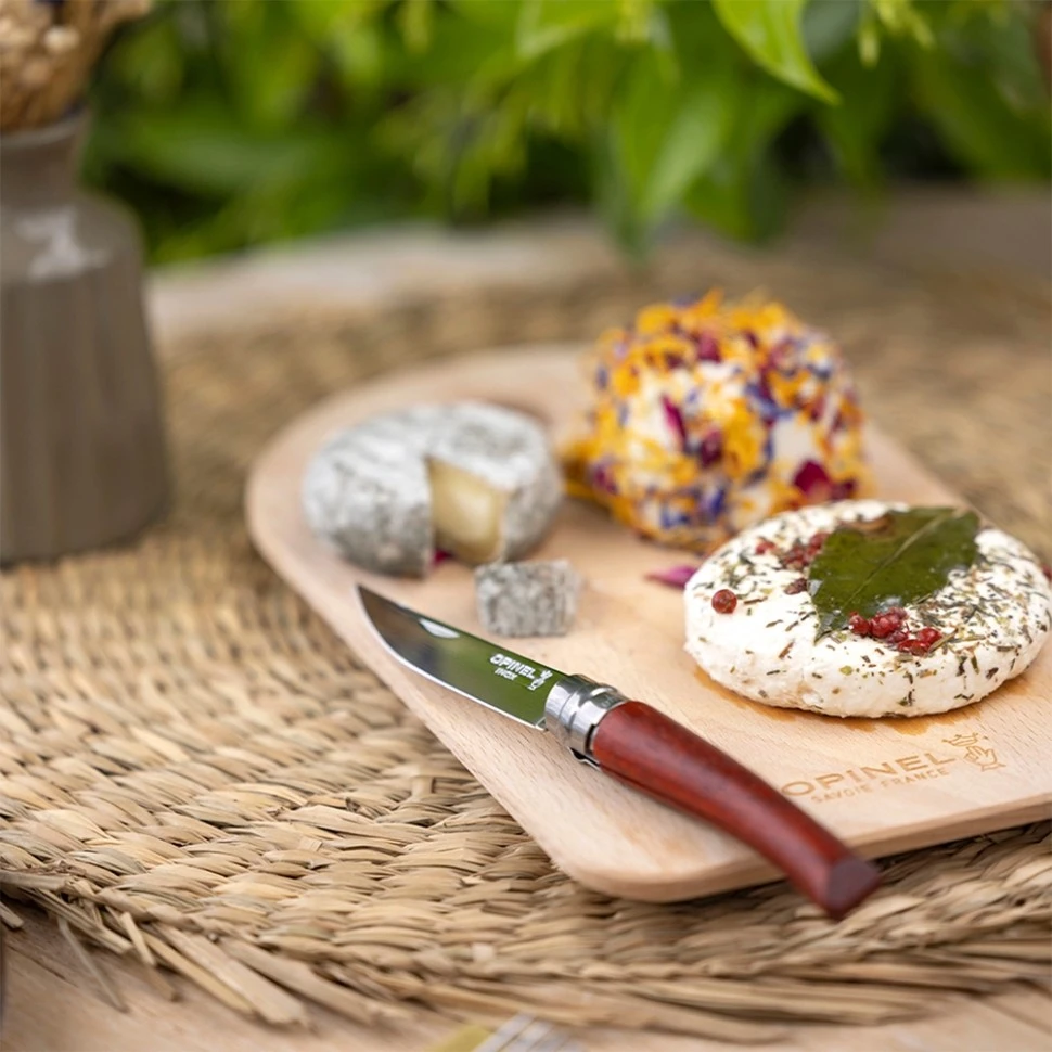 Нож Opinel №8 обладает более узким и гибким лезвием, чем традиционные модели, поскольку предназначен для таких тонких кулинарных операций как разделка рыбы, мяса и птицы. Обтекаемая рукоять из бубинга создана для комфортного удержания ножа в руке. А благодаря складной конструкции и легкому весу его удобно брать с собой в любые поездки на природу.