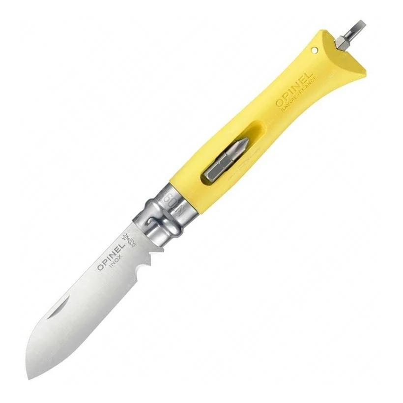 Описание ножа Opinel №09 DIY, нержавеющая сталь, сменные биты, желтый: